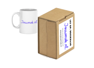 Onze mokken worden verpakt in een speciale doos. Deze doos is gemaakt voor het verzenden van mokken.