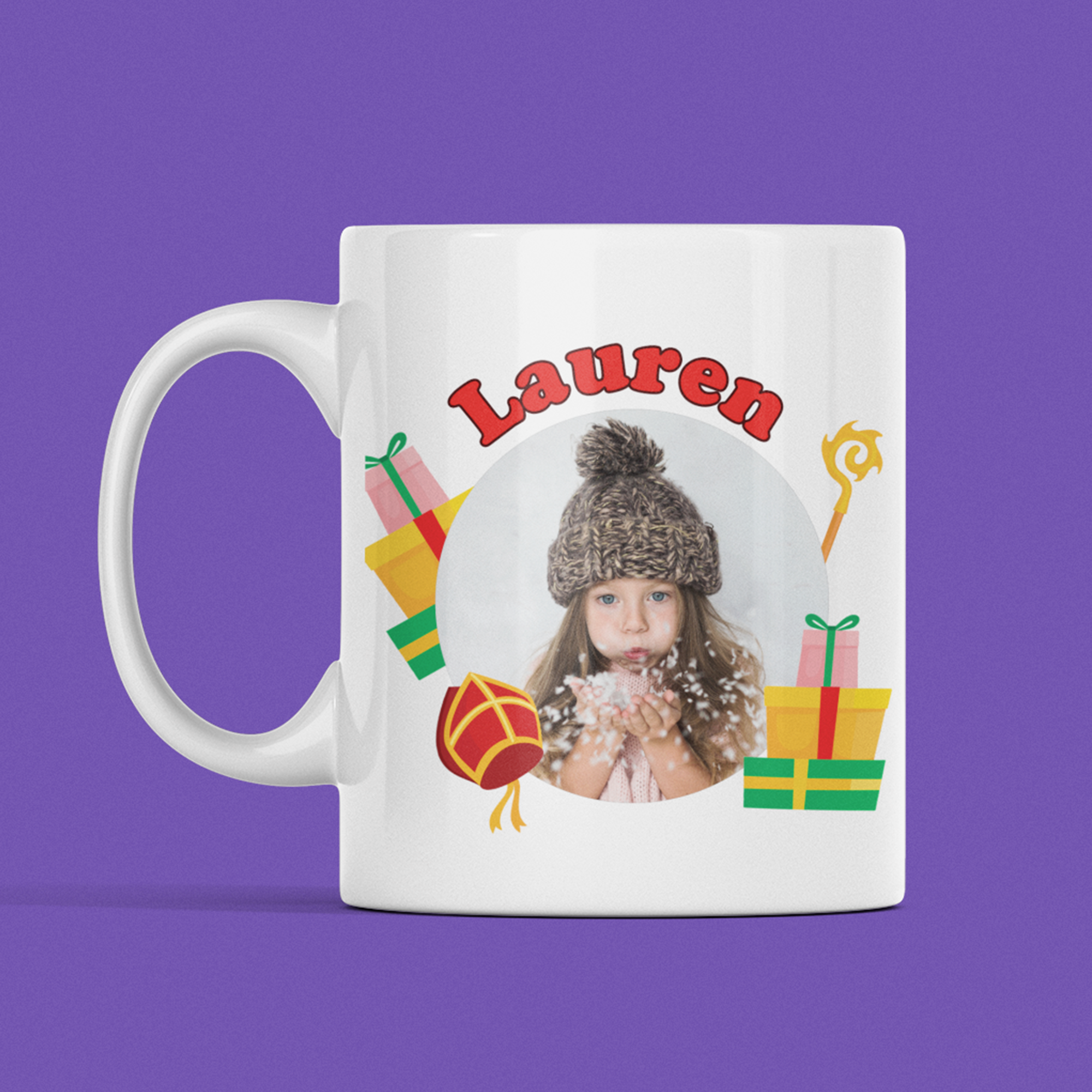 Sinterklaas Mok met Foto en Naam – Een Persoonlijk Cadeau voor de Feestdagen!
