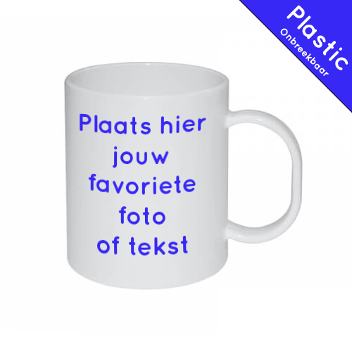 Wil je graag een uniek cadeau? Ontwerp dan deze bedrukte plastic mok zelf. In onze website ontwerp je makkelijk en zeer eenvoudig deze unieke mok. Wij verpakken hem goed voor je, zodat je zeker weet dat je een  écht leuk & persoonlijk cadeau ontvangt.