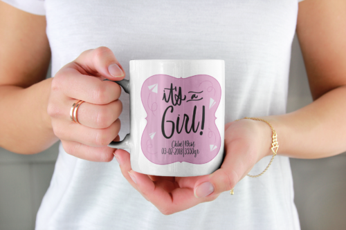 Deze schattige roze mok voor geboorte; helemaal persoonlijk met de geboorte datum, naam, lengte en gewicht. Dit prachtige geschenk zal zeker worden gewaardeerd!